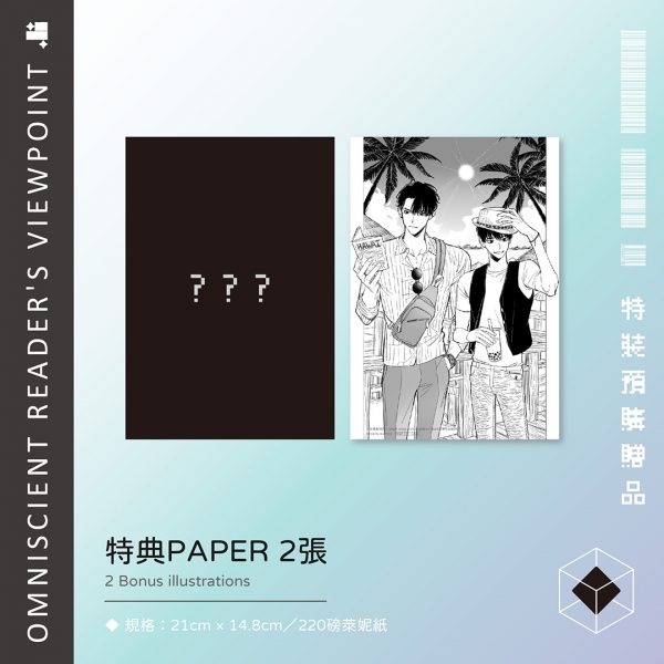 B、 特裝或限定版之「外包裝盒」,於印刷包裝、寄送或場領時可能產生碰撞痕跡,若遇包裝盒凹折受損,但不影響內裝物品之情況,非屬瑕疵,不得換貨或補寄。若您十分在意外包裝盒狀況,請至展場或實體書店,到場後現場購買。