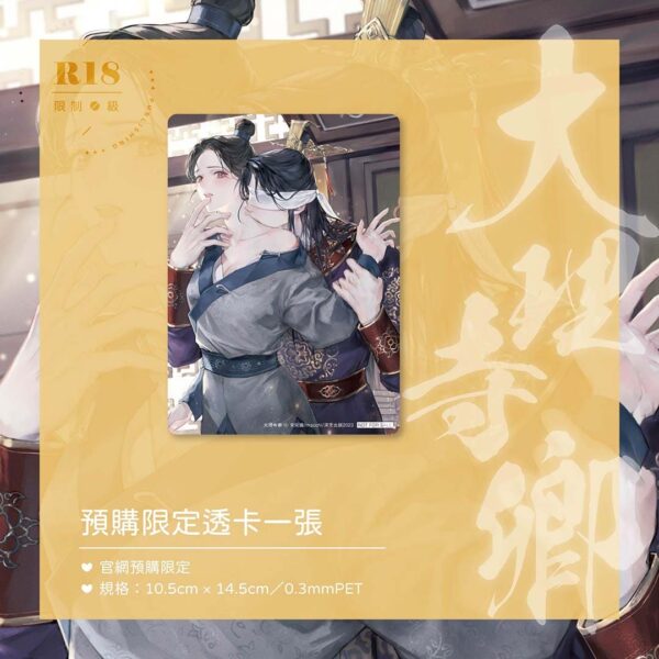1. 於指定線上通路購買《大理寺卿》限定版一套,完成訂單且付款成功即可獲得抽獎資格。