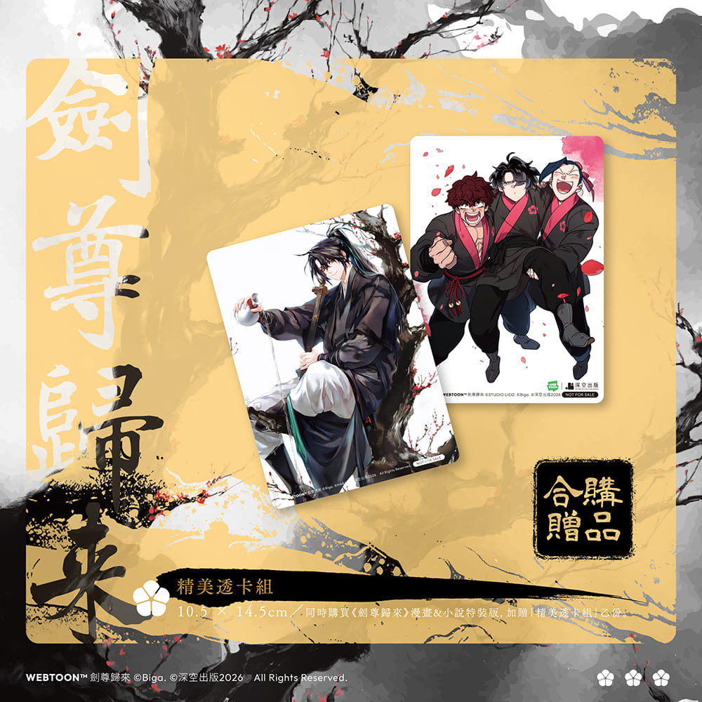 ※ 同時購買【劍尊歸來07+08漫畫特裝版】和【劍尊歸來01+02小說特裝版】(含簽名版),加贈精美透卡組乙份。